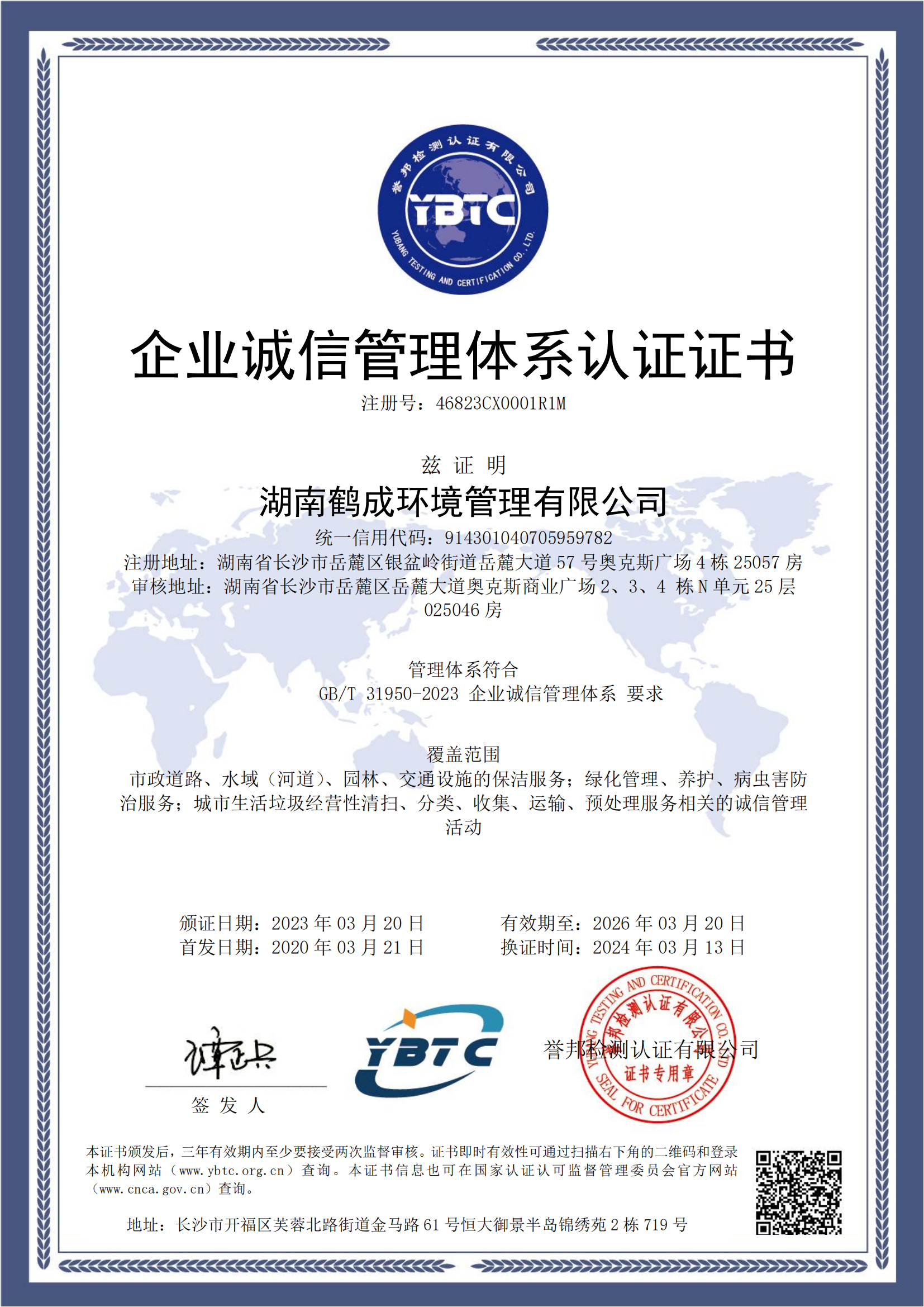 湖南鹤成环境理有限公司,成立2013q?月,原名长沙鹤成景观实业发展有限公司Q经q近几年的飞速发?各方资金的引?加之各界C会(x)力量的大力支?我司已发展成Z家实力雄厚的专业城乡环境化一体化q营商?br/>       目前公司总部自有办公面积500多^方米,座落在湖南省长沙?jng)岳麓区奥克斯广场,现有员?000余hQ其中管理h?26人,技术h?5人,公司配备行业优质的清z机械设备,现有多功能机扫R、大型洗扫R、自卸式垃圾清运车、高压清zR、高压水车、垃?qx(chng))车、压~垃圾R、高温高压洗地机、新能源车、E查R{?00余辆。ؓ(f)方便理公司环卫车辆、优化出行\Uѝ高效指导环卫工作,公司搭徏?jin)鹤成环境智慧环卫管理云q_Q对我司车辆q行数字化、专业化、精l化理。公怸要经营市(jng)攉K路清z维护、物业清z维护、园林绿化工E服务、风景园林工E设计与施工、交通设施的清洗l护、城?jng)生zd?攉q输、绿化管理等服务目?br/>